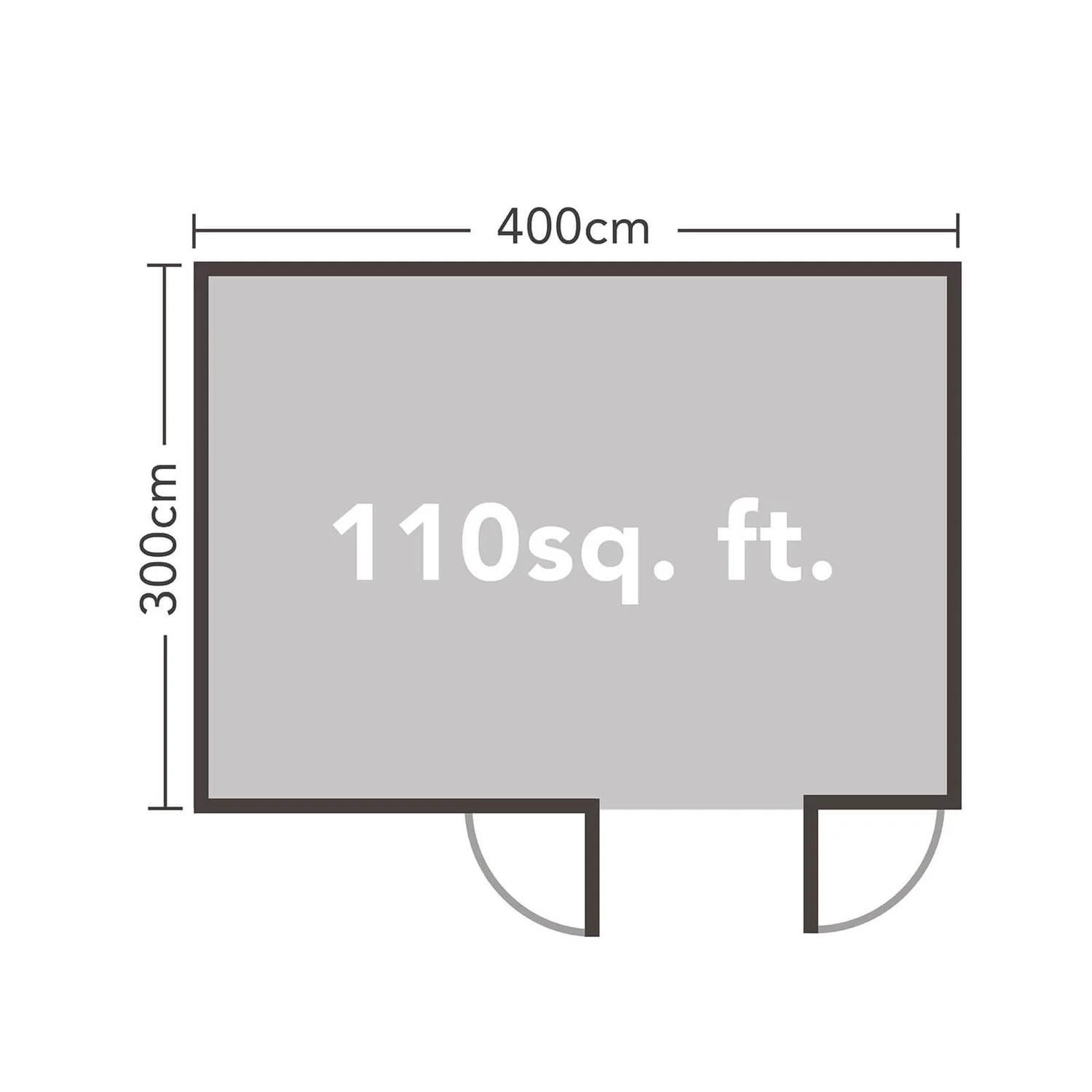 The fully glazed front aspect allows plenty of light in while the solid side and back walls maximise wall space for shelving and furniture or other equipment. This makes the Chiltern suitable for a variety of uses from home office to hobby room or a garden gym. Internal floor dimensions of 3.73m x 2.73m (12’3 x 8’11) offer a useful 10.2 square metres (110 square feet) of accommodation.