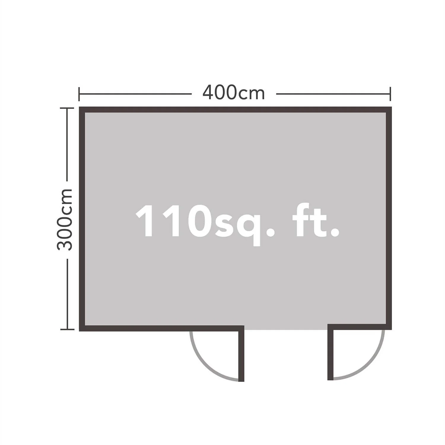 One of Forest’s best selling log cabins, the Chiltern has an apex roof configuration and a 4m x 3m footprint making it a compact yet usable building. The fully glazed front aspect allows plenty of light in while the solid side and back walls maximise wall space for shelving and furniture or other equipment. This makes the Chiltern suitable for a variety of uses from home office to hobby room or a garden gym. Internal floor dimensions of 3.73m x 2.73m (12’3 x 8’11) offer a useful 10.2 square metres (110 square feet) of accommodation.