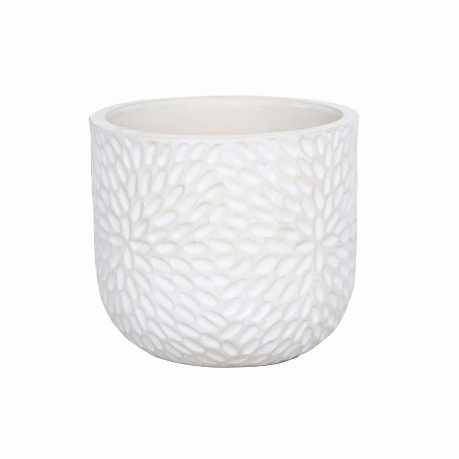 This beautiful large white debossed ceramic planter supported by a gold metal stand is a perfect way for bringing warmth & greenery to your home.