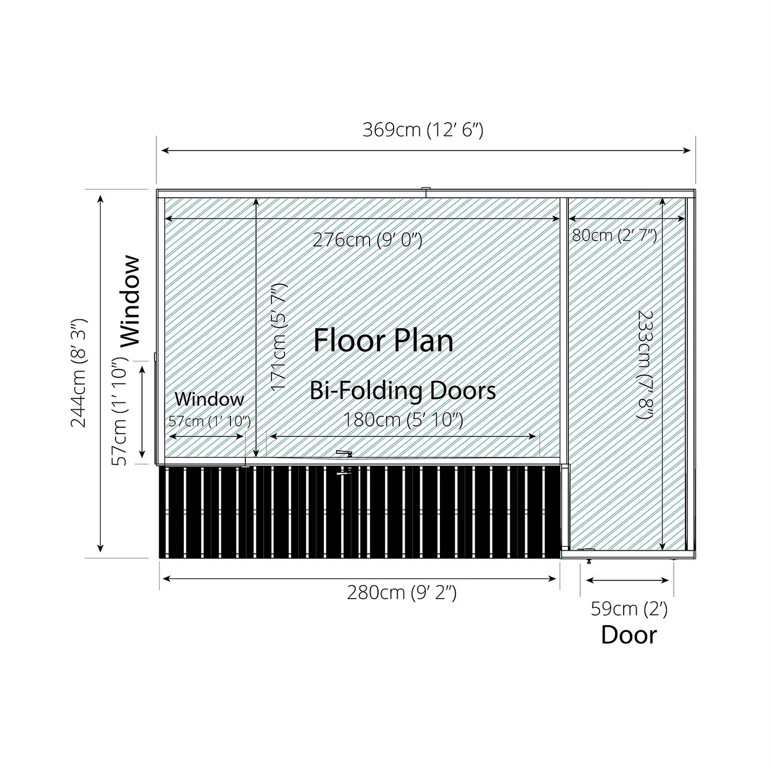 Featuring bi-folding doors and an elegant veranda, this building is great for those looking for somewhere stylish to relax, unwind and enjoy uninterrupted views of the garden with the benefit of an additional storage area. Premium tongue and groove boards make up the walls, floor and roof of this premium summerhouse. Complete with thick wooden framing to support the cladding internally, this building offers a rigid and long-lasting structure. Perfect for years of enjoyment.