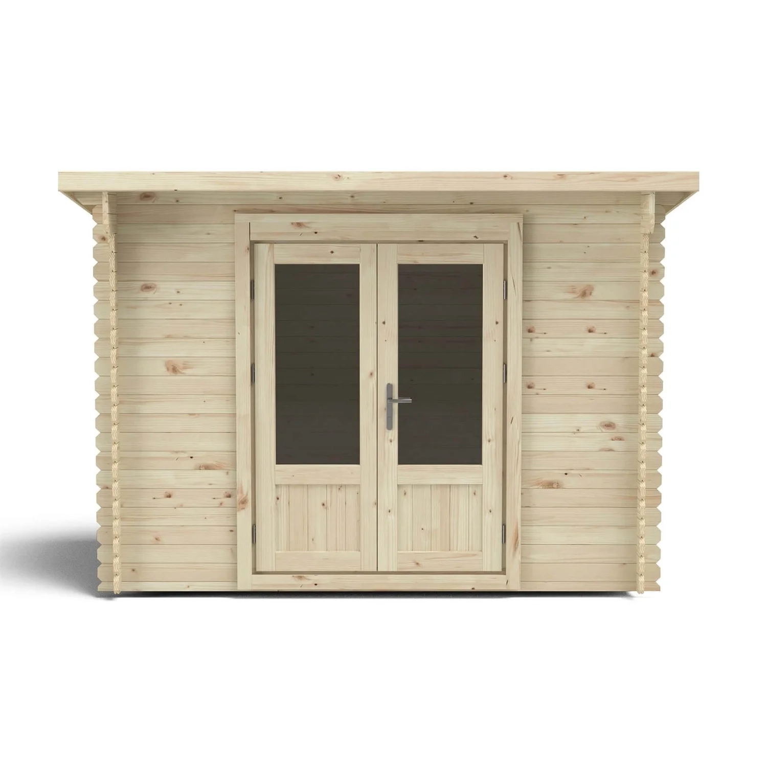 - Walls use 28mm thick interlocking logs for a robust build