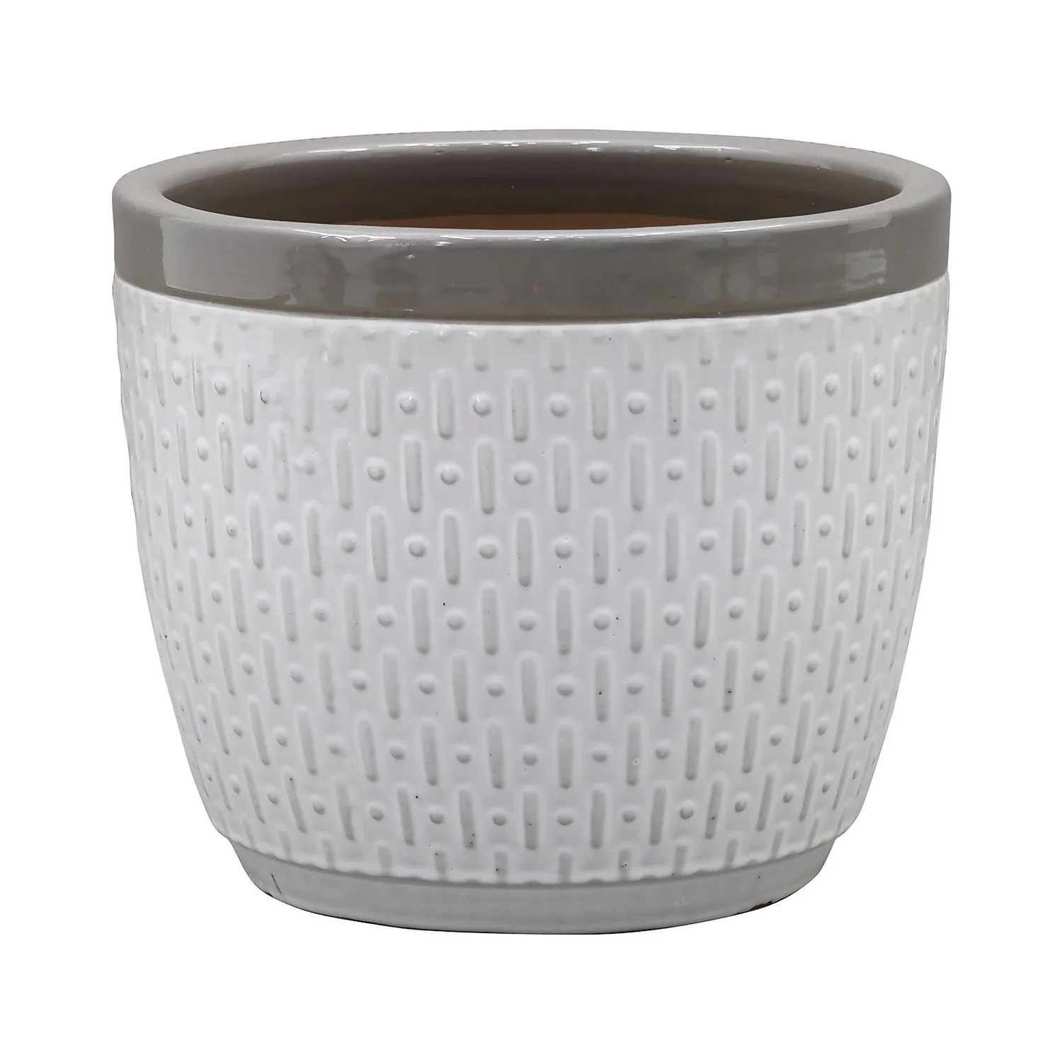 A modern embossed pattern planter finished with a two-tone glaze in House Beautiful colours.
