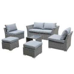 Keter California 2 Seater Outdoor Balcony Garden Furniture Chaise Lounge – Graphite With Grey Cushions