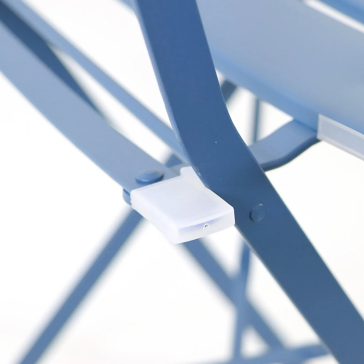 The blue Millie metal bistro set, includes two folding chairs and one folding table – perfect for enjoying drinks or meals in your garden at any time of the day. The 3 piece patio set with small patio table and folding chairs would also be perfect for balconies. The lightweight design makes it easy to move around as desired, you could even move it indoors if needed.