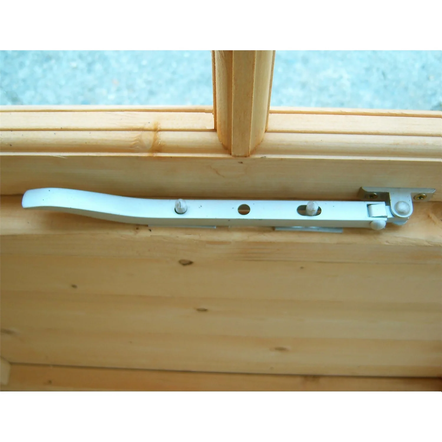 The wide double doors ensure easy access into the building and the large opening storm resistant side window lets in plenty of light. The cladding is 12mm slow grown, very high grade FSC approved pine on sturdy 34mm square framing. Mineral roof felt, a fixing kit and assembly instructions are provided. It is finished with a honey brown basecoat preservative treatment ready for your own top coat immediately on installation, this could be a paint or stain.
